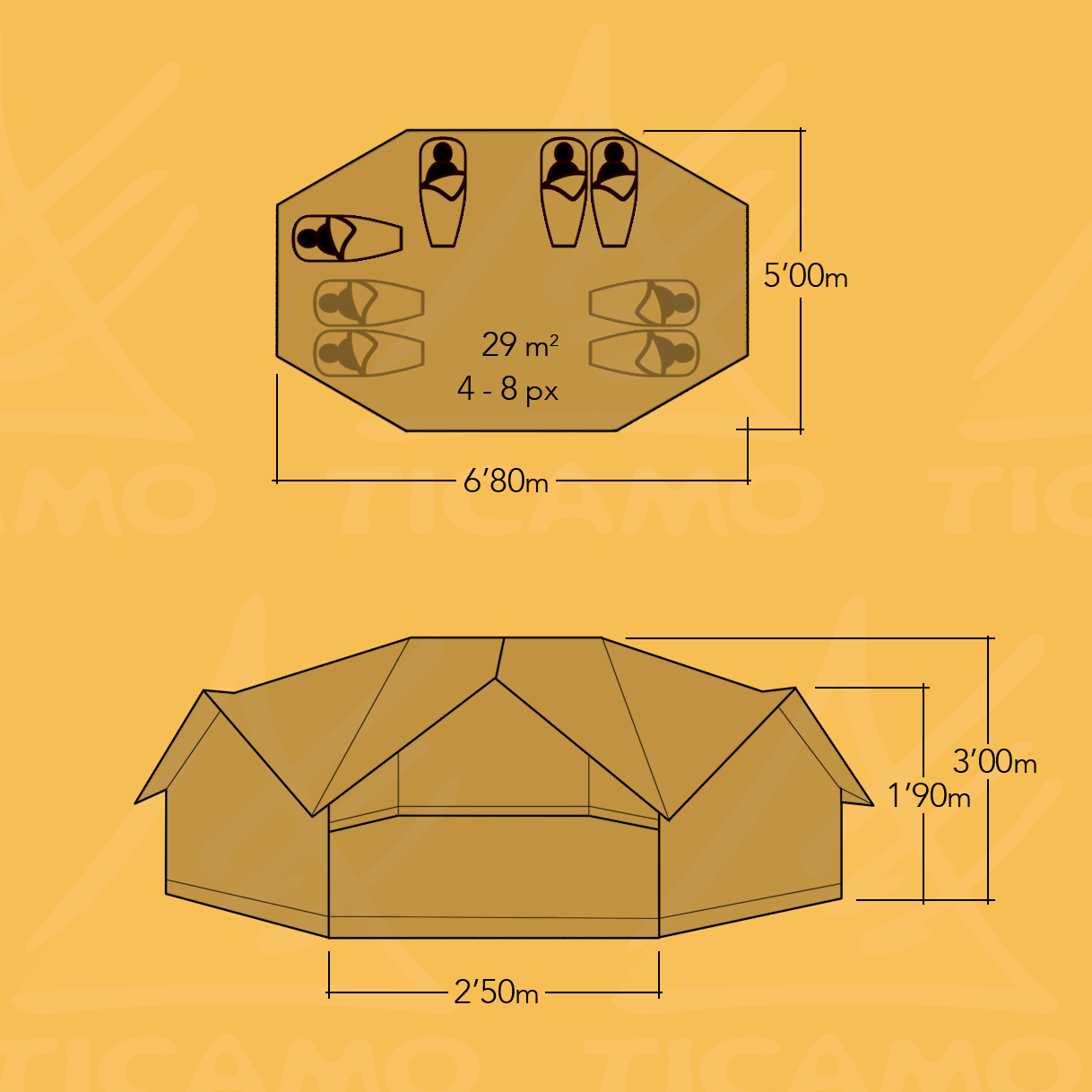 Grand Mali es nuestra tienda de glamping XL pensada para campings y resort que buscan alojamientos de gran capacidad con estética premium y operación profesional. Con 29 m² útiles y capacidad para 4–8 personas, permite crear suites familiares, layouts lounge.